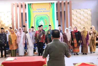 HarianUpdate.com | Meranti – Bupati Kepulauan Meranti, AKBP (Purn) H. Asmar, secara resmi melantik 18 kepala sekolah dari jenjang TK, SD, dan SMP dalam sebuah prosesi yang digelar di Aula Kantor Bupati Kepulauan Meranti, Jalan Dorak, Selatpanjang, Selasa (13/1/2026).