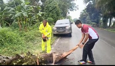 HarianUpdate.com | Lahat – Anggota Polsek Sanga Desa bergerak cepat menindaklanjuti laporan masyarakat terkait peristiwa pohon tumbang yang menghalangi akses jalan Didesa Terusan, Kecamatan Sanga Desa, Kabupaten Musi Banyuasin (Muba), pada sabtu 10/01/2026.
