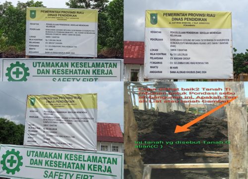 Sejumlah item tersebut antara lain ; material tanah untuk timbunan lantai lokal dinilai tidak sesuai standar. Sesuai fakta dan data dilapangan tanah untuk timbunan yang digunakan berasal dari tanah galian pondasi dan tanah yang sengaja digali di area proyek, bukan dari borrow area sesuai spesifikasi