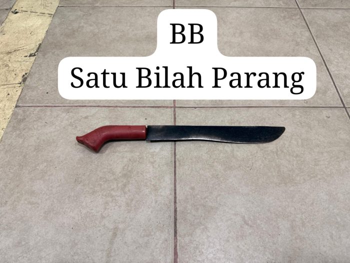 Polisi juga mengamankan sejumlah barang bukti, di antaranya sebilah parang, pakaian yang diduga digunakan saat kejadian, serta barang lainnya.